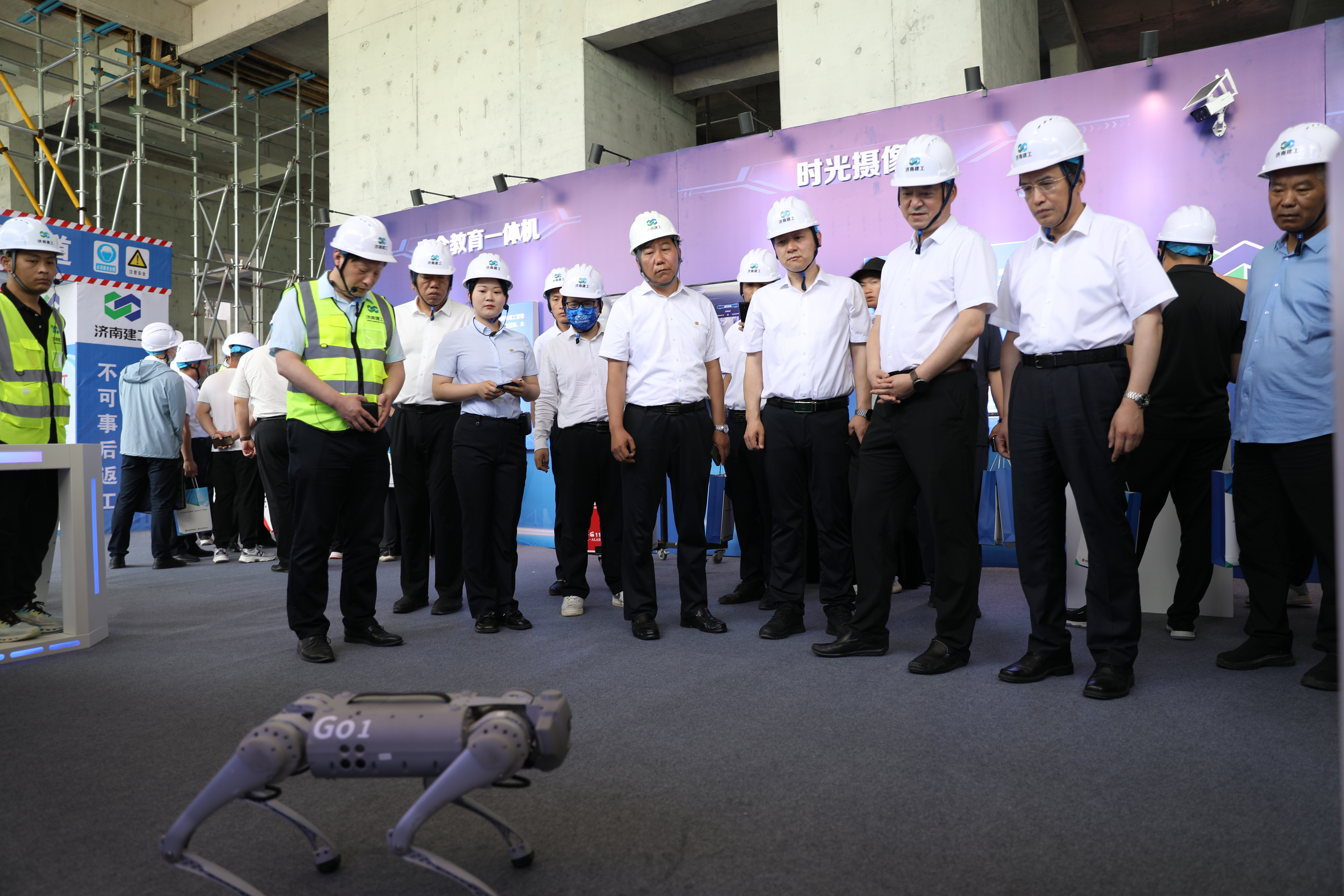 啟動(dòng)儀式上,與會(huì)人員現(xiàn)場(chǎng)觀摩了集團(tuán)承建的中國科學(xué)院空間應(yīng)用技術(shù)濟(jì)南研究院項(xiàng)目安全生產(chǎn)標(biāo)準(zhǔn)化建設(shè)、安全管理、智慧建造應(yīng)用、企業(yè)文化宣傳等成果展示,AI慧眼、無人機(jī)、定位安全帽、深基坑安全監(jiān)測(cè)、四足機(jī)器狗、洞口守護(hù)精靈、安全教育一體機(jī)、建工安全員專用工裝等數(shù)字化、智慧化安全工具的廣泛應(yīng)用引來各參加企業(yè)的紛紛借鑒和交流,贏得與會(huì)領(lǐng)導(dǎo)的一致好評(píng)。