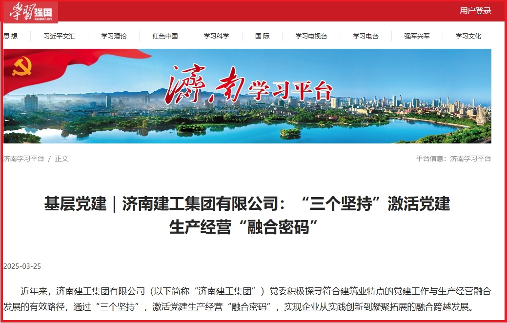 近日,集團黨委黨建經(jīng)驗做法《“三個堅持”激活黨建生產(chǎn)經(jīng)營“融合密碼”》,相繼被“學習強國-濟南學習平臺”和“山東省委組織部-燈塔黨建在線”刊登。